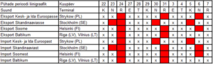 ACE Logisticsi autotranspordi väljumisgraafik pühade perioodil (autod väljuvad x-ga märgistatud päevadel):