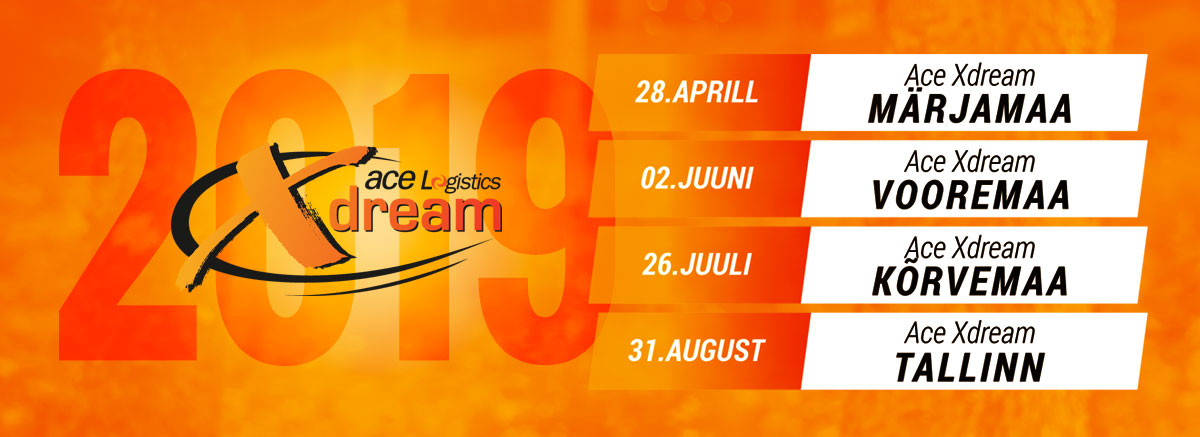 ACE Xdreami peatoetajana jätkame sarja tutvustamist ja TASUTA osaluste loosimist ka ACE Logisticsi klientide seas. Aprilli alguses loosib ACE Logistics esmalt kõigi Lääne-Eesti (Hiiumaa, Saaremaa, Läänemaa, Pärnumaa ja Raplamaa) e-ace kasutajate vahel välja tasuta 3-liikmelise võistkonna pääsme ACE Xdream C-raja etapile 28. aprillil Märjamaal. Loosimisel osalemise eelduseks on vähemalt 10 e-ace tellimust märtsikuu jooksul.