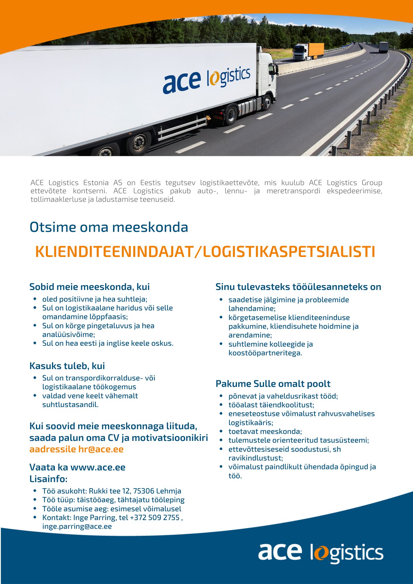 ACE Logistics avaldab oma töökuulutused siinsamas rubriigis.