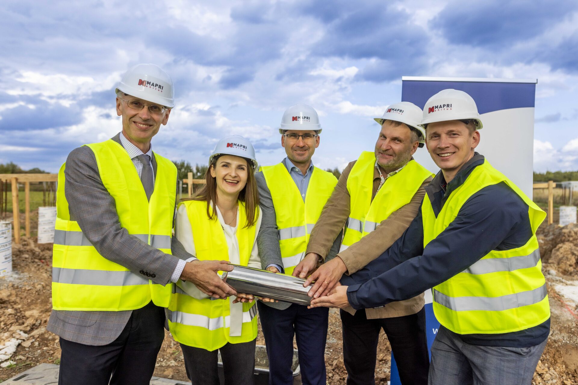 On September 25, the cornerstone for the new centre was laid by Andres Matkur, CEO of ACE Logistics Group, Karli Lambot, Board Chairman of ACE Logistics Group, Juana Kudarauskiene, CEO of ACE Logistics UAB, Ignas Puluikis, Project Manager of ACE Logistics UAB, and Tarmo Roos, CEO of Mapri Ehitus.